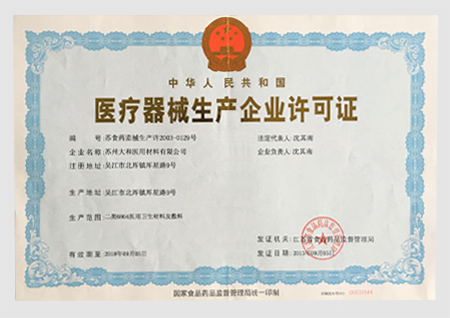 醫療器械生產企業許可證(編號:蘇食藥(yào)監械生產許2003-0129號)---蘇州大(dà)和(hé)